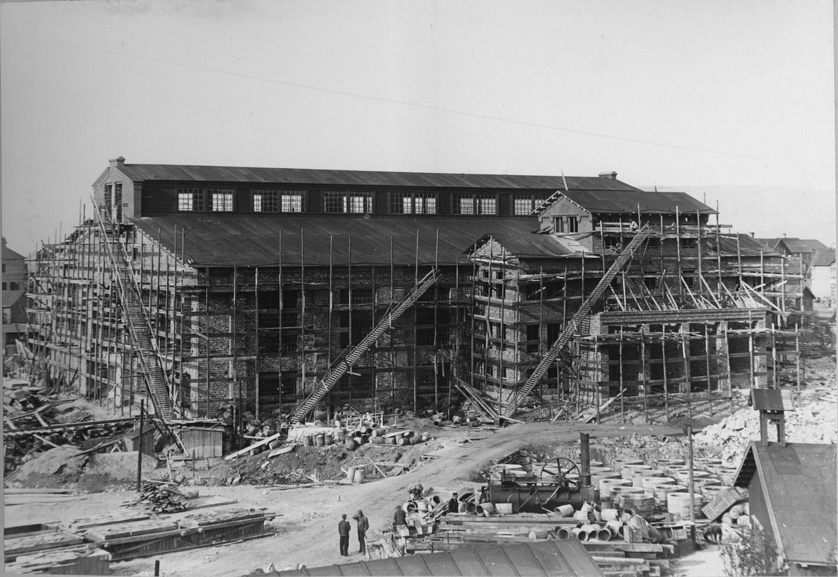 Byggandet av elektricitetsverket i Kirkenes, Norge. Fotografiet ingår i ett album från AB de Lavals Ångturbin, 1909. "The Power Station of Aktieselkabet Sydvaranger i Kirkenes".