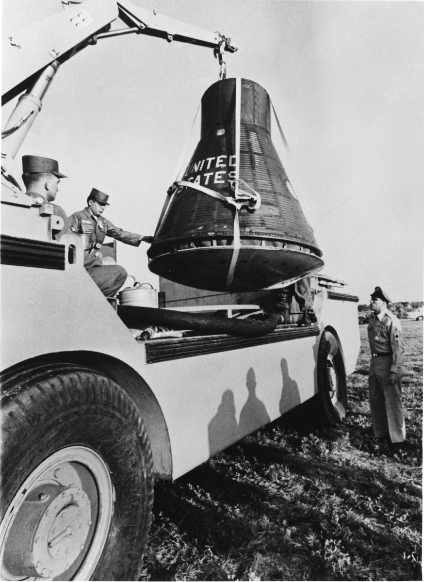 Hydrauliska Industri AB, Hudiksvall. För bärgning av den Mercery-kapsel i vilken astronauten Shepard gjorde sin historiska rymdfärd användes en svensk lastapparat.