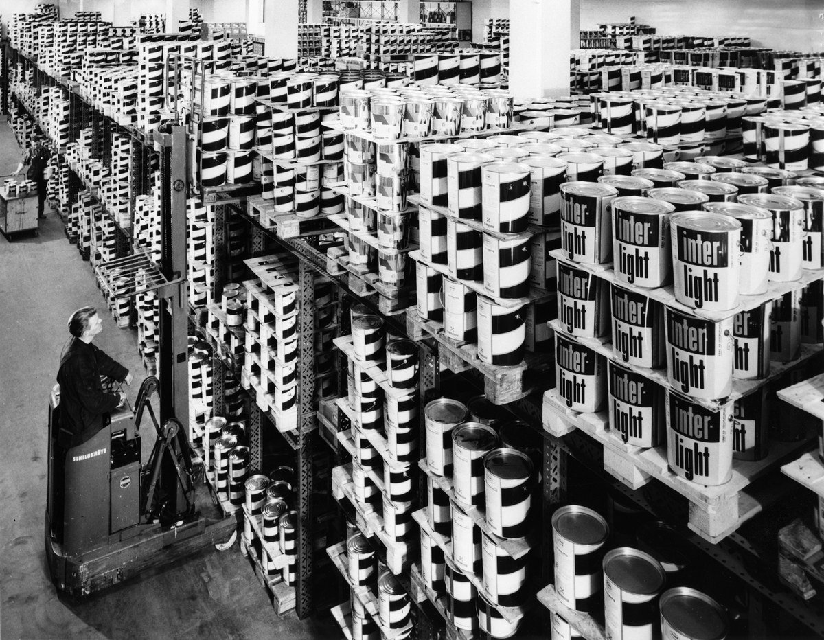 Lagret är sedan 1957 ordnat för truck- och pallhantering. Gullhögens Mineralull AB, Billesholm.