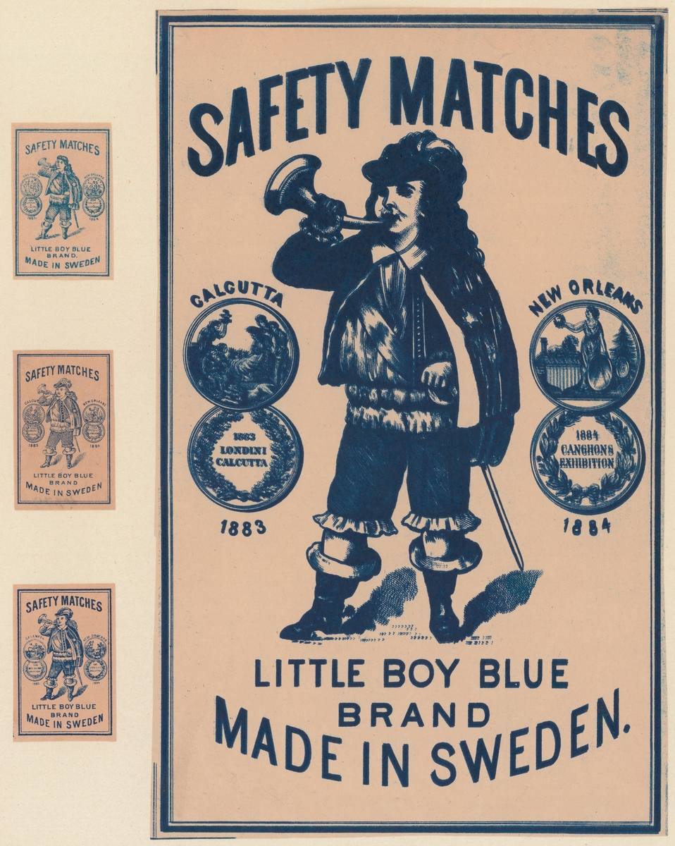 Etiketter för tändsticksaskar, från Svenskt Industri- och Handelsmuseum.