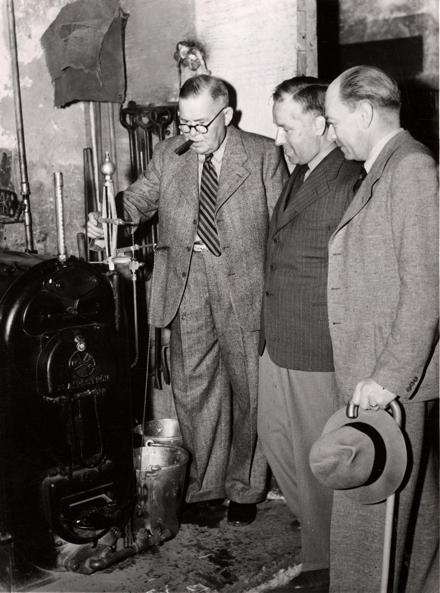 Arcaregulator till värmeledningspanna. Ingenjör Ragnar Carlstedt demonstrerar.