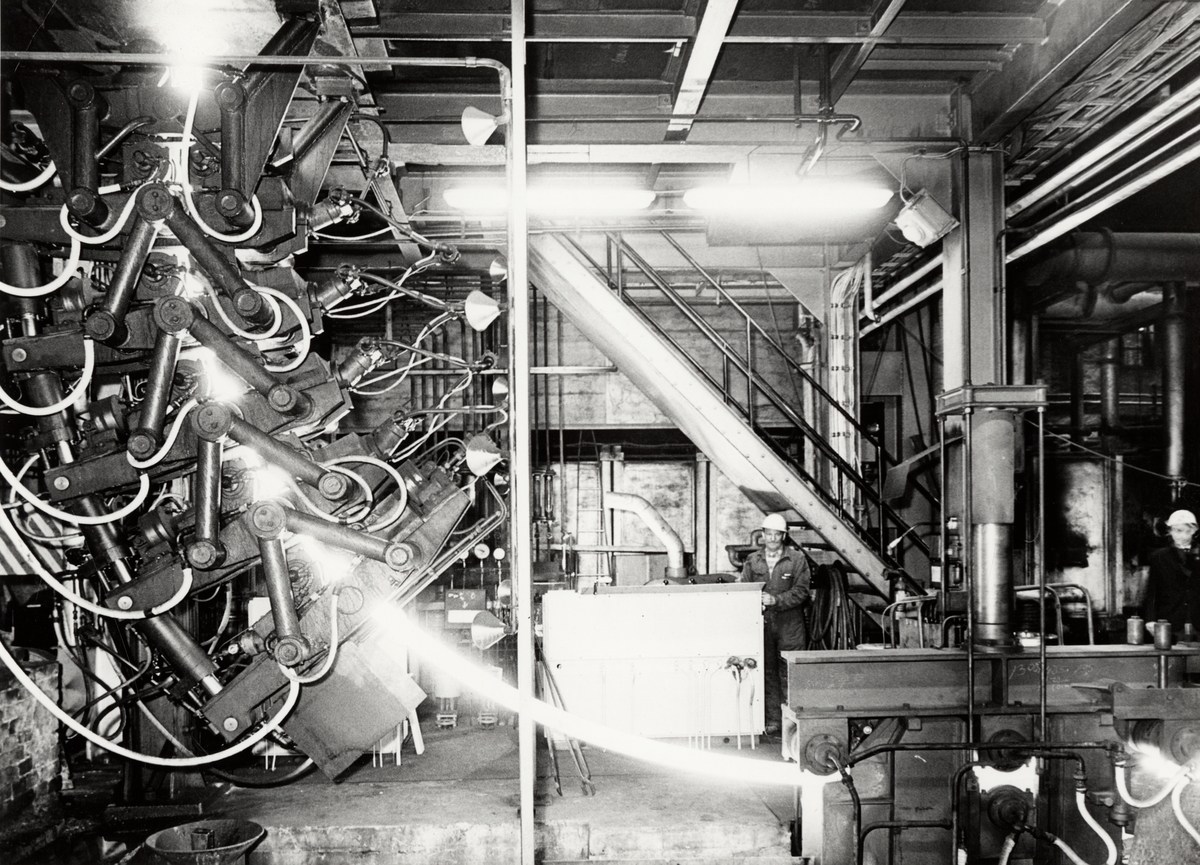 Den stelnade strålsträngen böjes med en hydraulisk böjanorning från lodrätt till vågrätt och går in i riktverket.