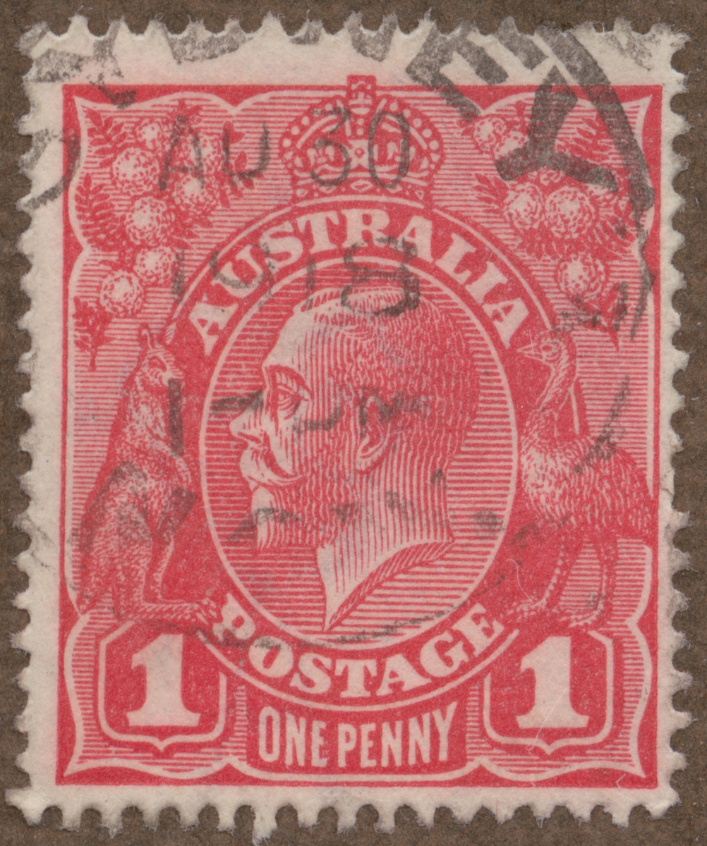 Frimärke från Australien, 1914. Motiv av Emu - fågel t.h.