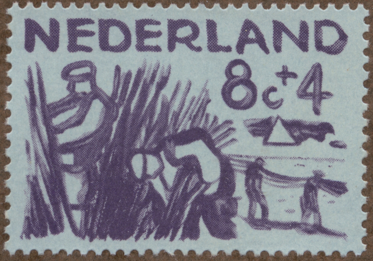 Frimärke från Nederländerna, 1958. Motiv av Sädesskörd "-Propaganda serie: kampen mot landets översvämning-"