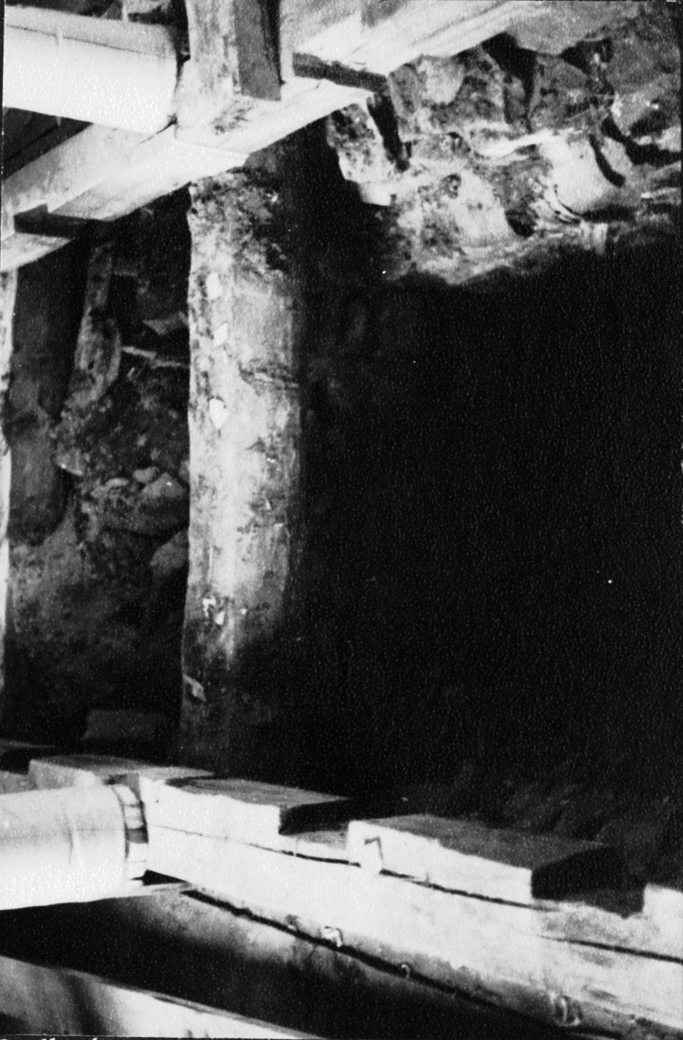 Prästgraven i gången, på sidorna synes läktarpelarna. Från öster.