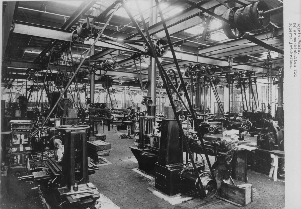 Interiör av del av maskinhallen vid Södertäljefabriken.