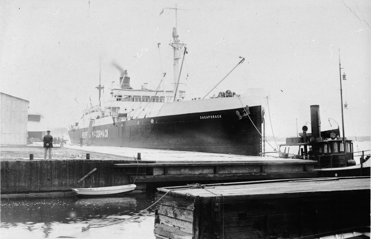 Byggherre: Byggnadsaktiebolaget Contractor, Stockholm. Den färdiga massamagasinskajen vid sulfitfabriken.