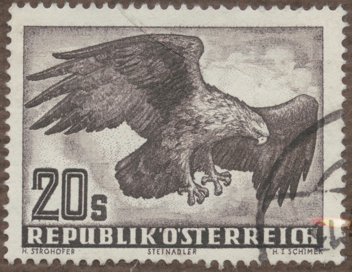 Frimärke från Österrike, 1957. Motiv av Steinadler eller "Gyllene Örnen"