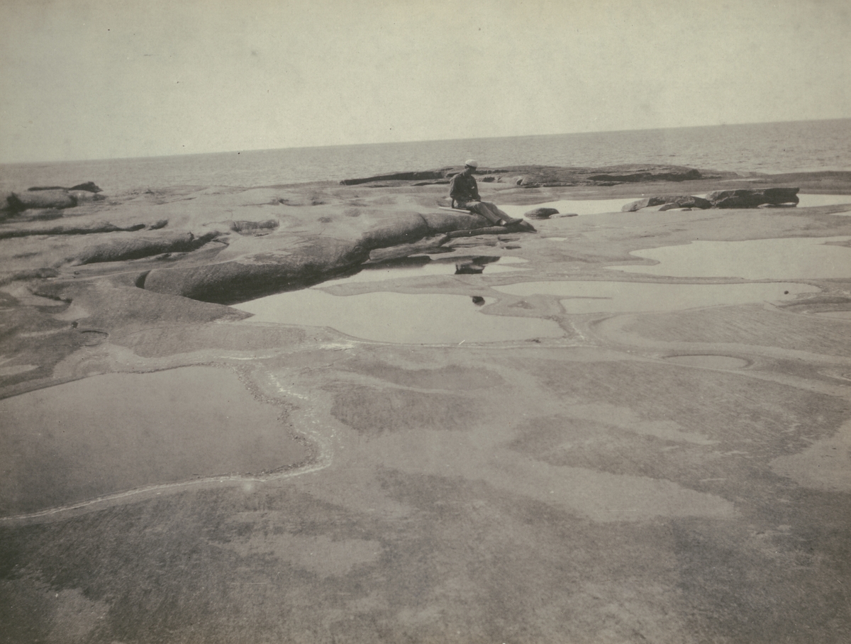 Diverse bilder från Fred Goldbergs samling. Motiv av man som sitter på klippor vid havet.