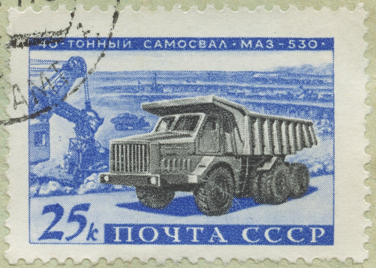 Frimärke från Ryssland, 1060. Motiv av 40 tons lastbil, Truck MAZ-530 "Utveckling av den Sovjetiska Bilindustrin, 4v."