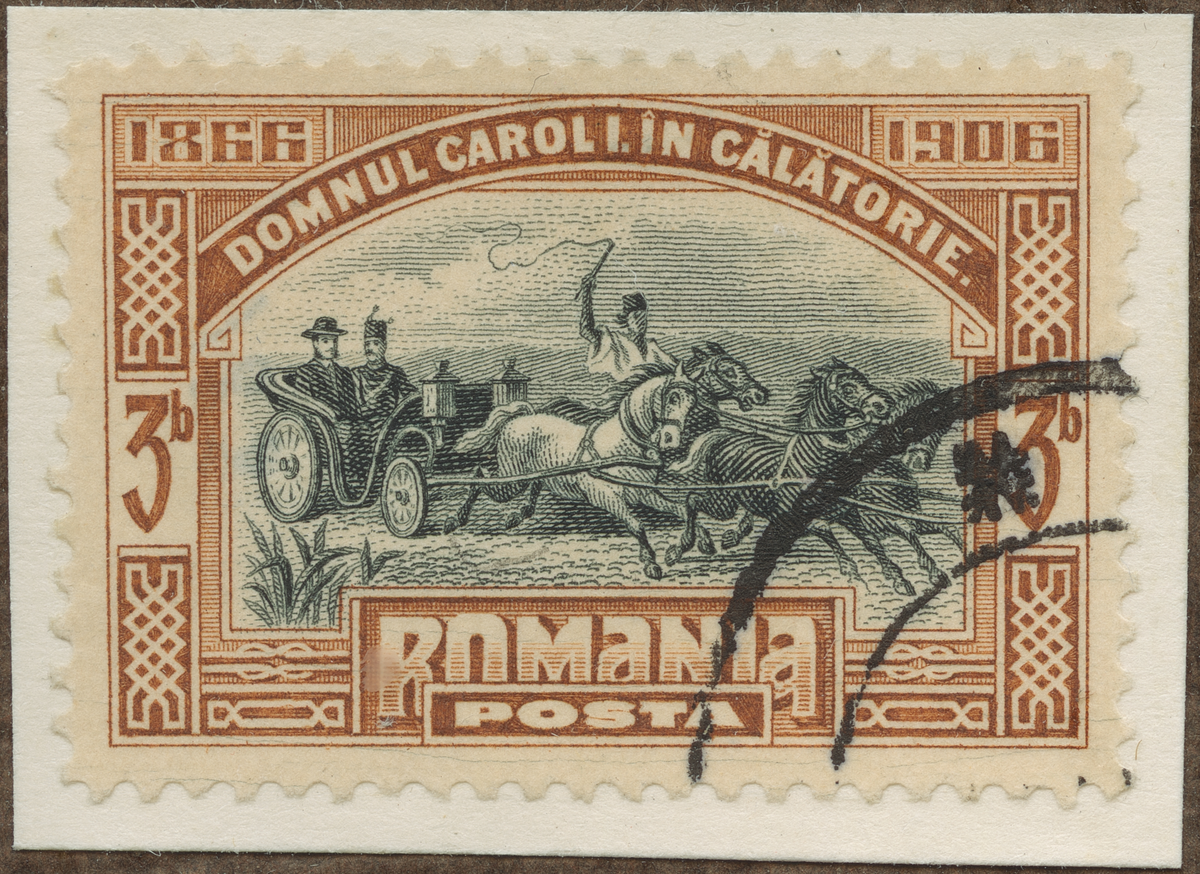 Frimärke från Rumänien, 1906. Motiv av Prins Carl i fyrspann 40-års regering 1866-1906.