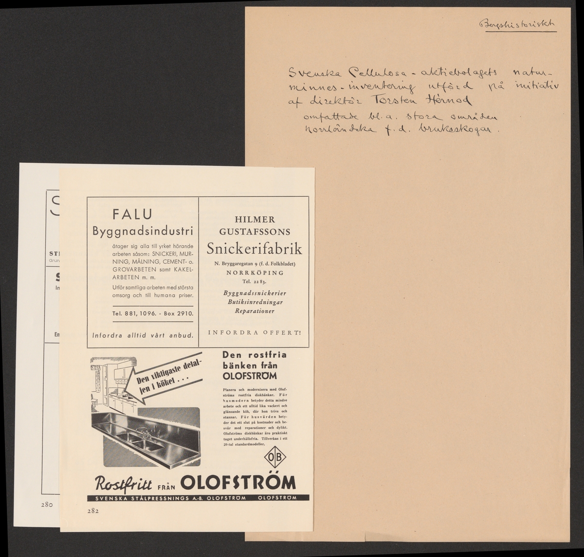 Titel: Diverse allmänt om bergshistoriskt material, A-J. Ämnesordnade handlingar av bergshistoriskt och bergstekniskt innehåll. Ur Carl Sahlins bergshistoriska samling.