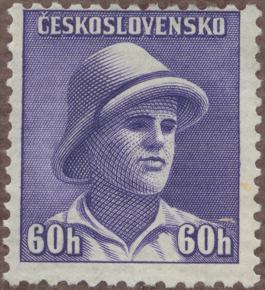 Frimärke från Tsceckoslovakiet, 1945. Motiv av Soldat Adamek Tscheckoslovakisk flygare