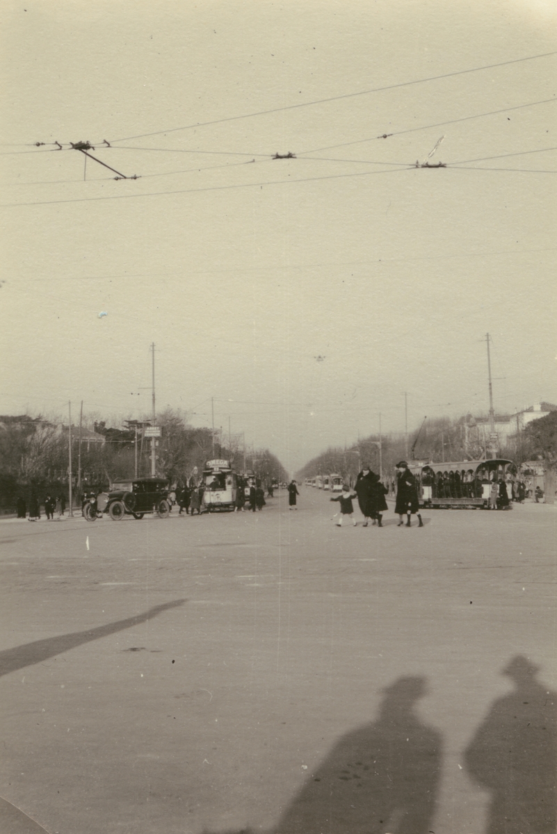 Fotografi från Albin Ahrenbergs resa till Grönland 1929. Motiv av bred väg i stad.