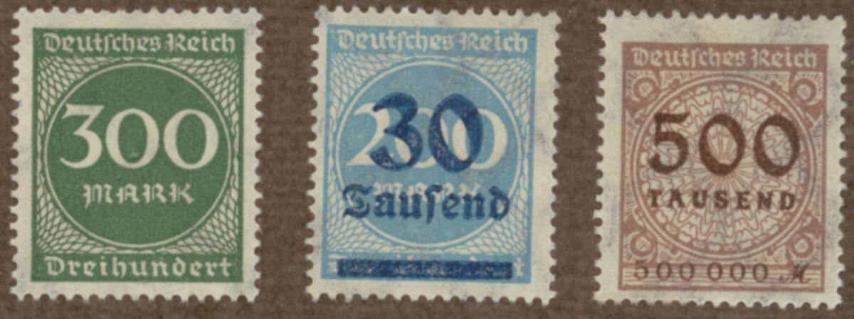 Frimärken från Tyskland, 1923. Motiv av Tyska valutainflationen I, 300 mark- 500 tusen mark