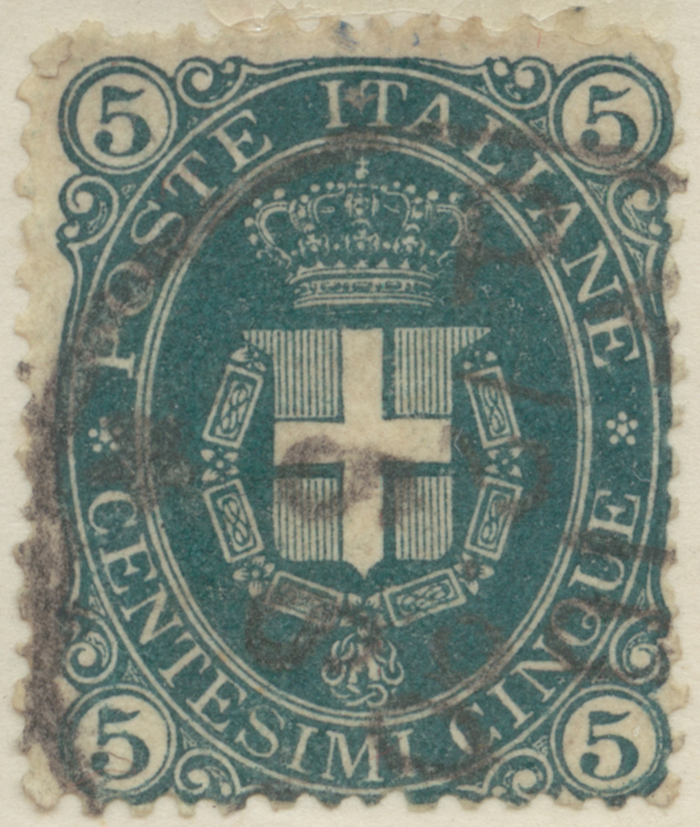 Frimärke från Italien, 1891. Motiv av "Savoie":s Vapen-krona- (Italienska kungshuset tillhör släkten "Savoie")