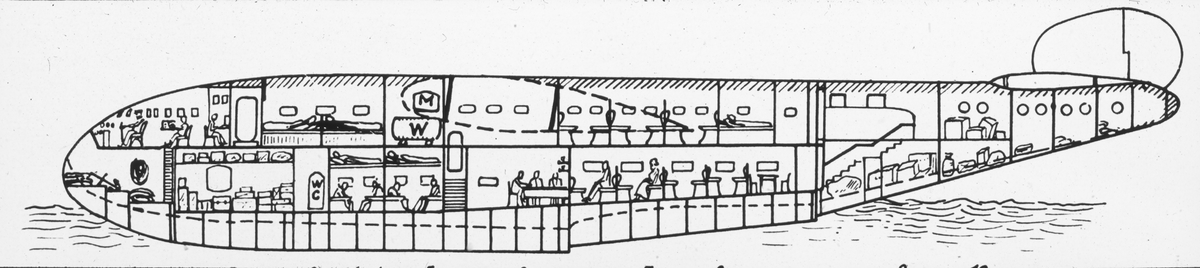 Skioptikonbild med motiv av ritning av genomskuret passagerarplan.