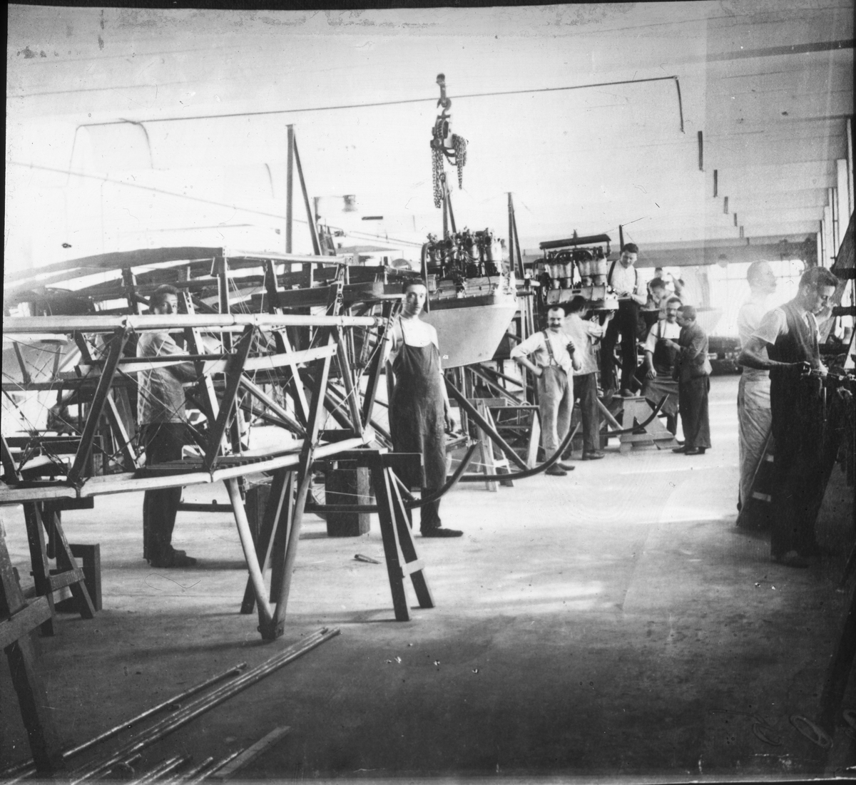 Titel: Skioptikonbild med motiv från okänd flygplansverkstad.