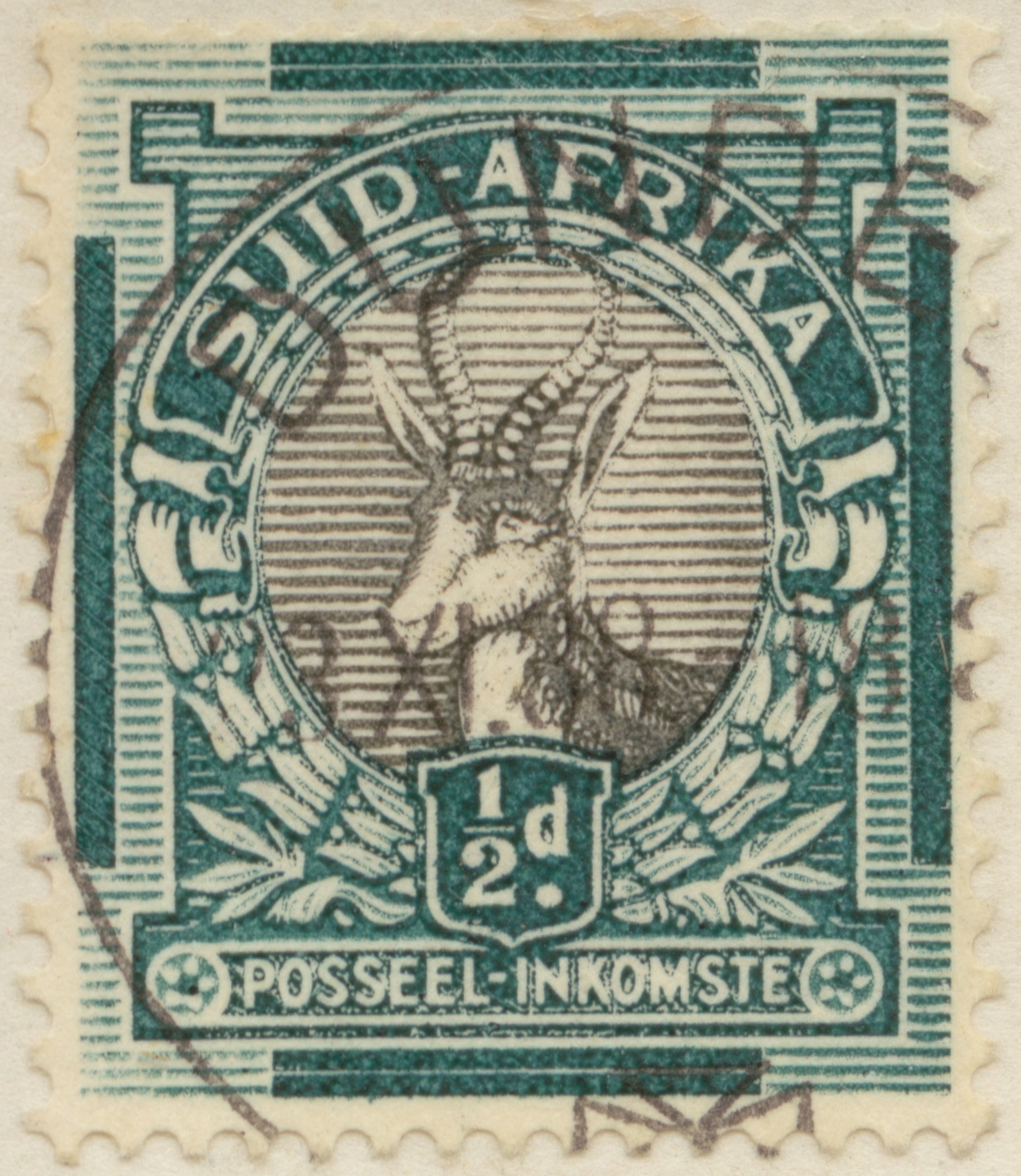 Frimärke från Syd Afrikanska Unionen, 1926. Motiv av Gems. s.k. "springbock"