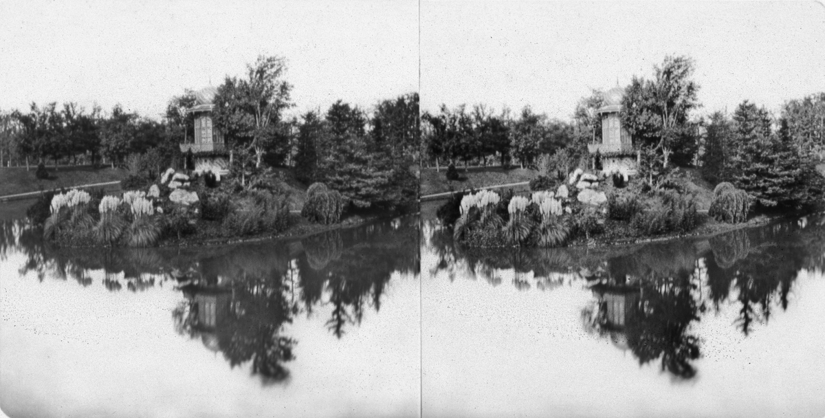 Stereobild. Bois de Boulogne på utställningen i Paris.