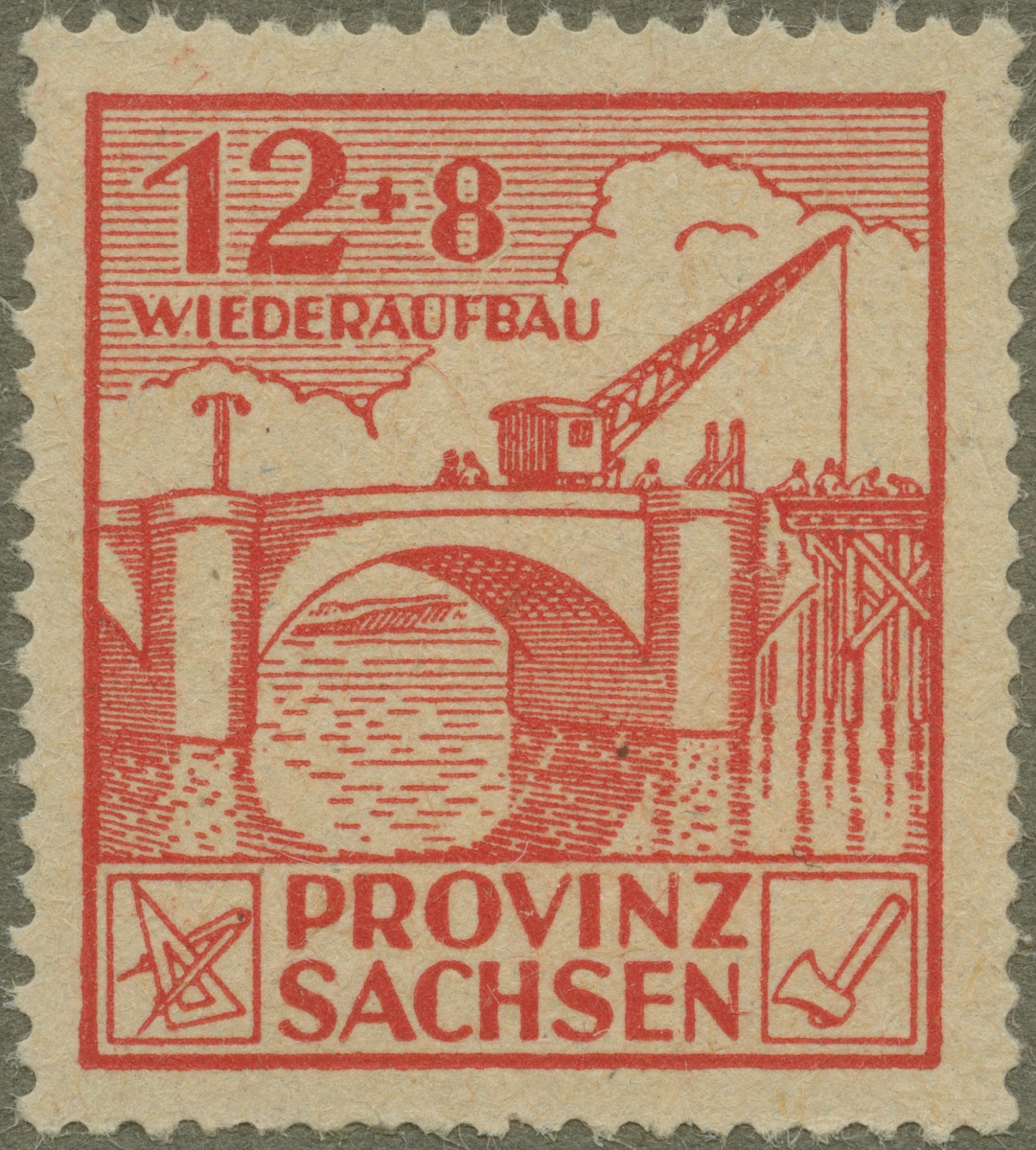 Frimärke från Tyskland, 1946. Motiv av Broreparation, Sachsen 1946,