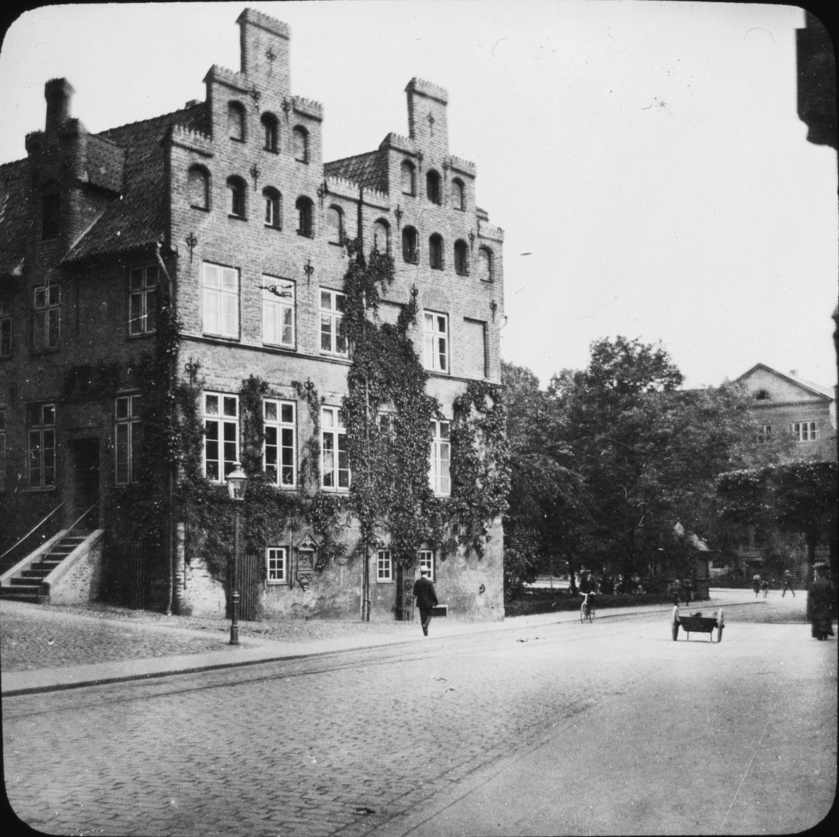 Titel: Skioptikonbild med motiv från Lübeck. Bilden har förvarats i kartong märkt: Resan 1907. Lübeck 8. 2