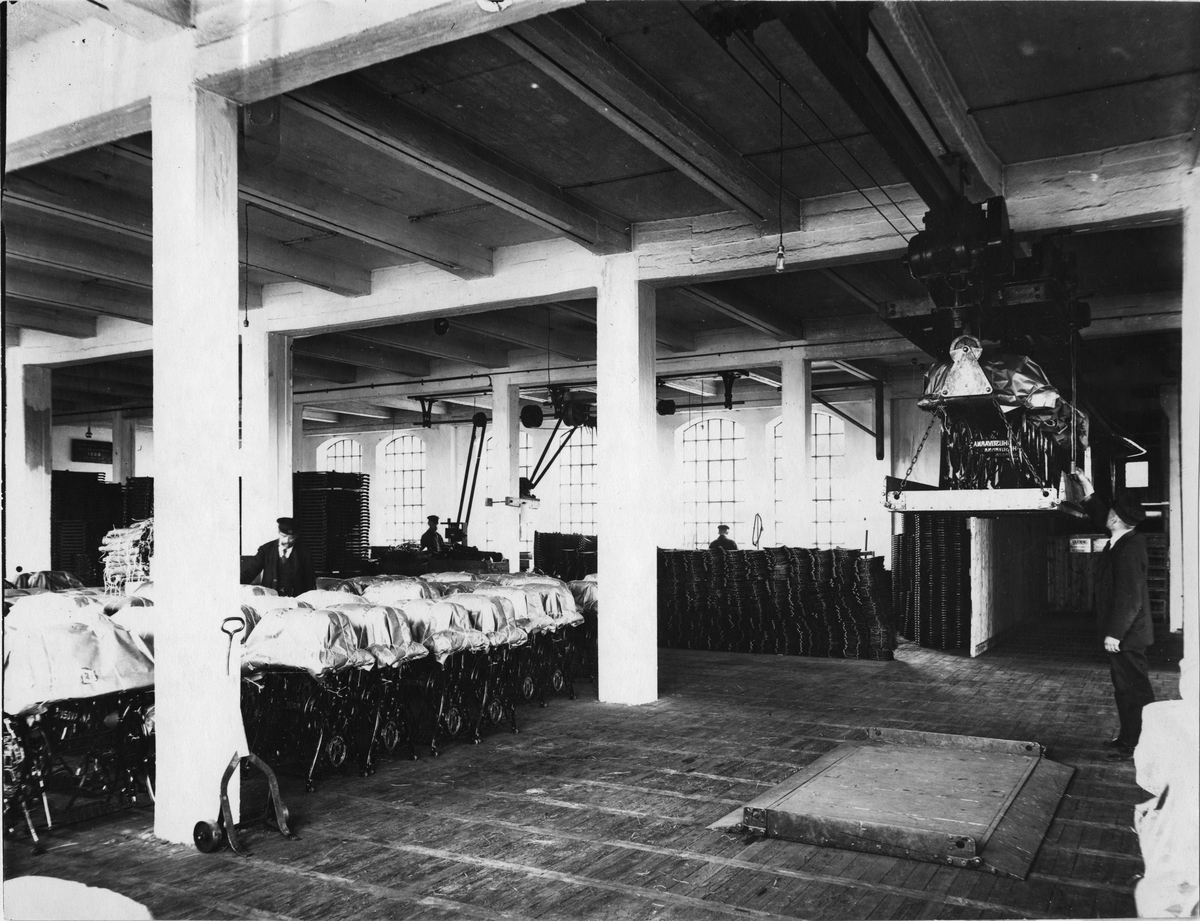 Husqvarna Vapenfabriks AB. Packningssal i symaskinsverkstaden