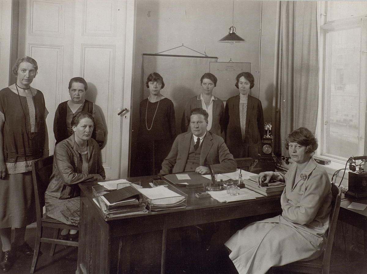 Stockholm år 1923. Ks É.Mörne, ks A Andersson, tf.vf. E. Wester-dahl, ktb E. Jacobson, fkr. T. Wennerström, rtf. E. Lund wall, klb. E. Johanson och knt. R. Söderberg.