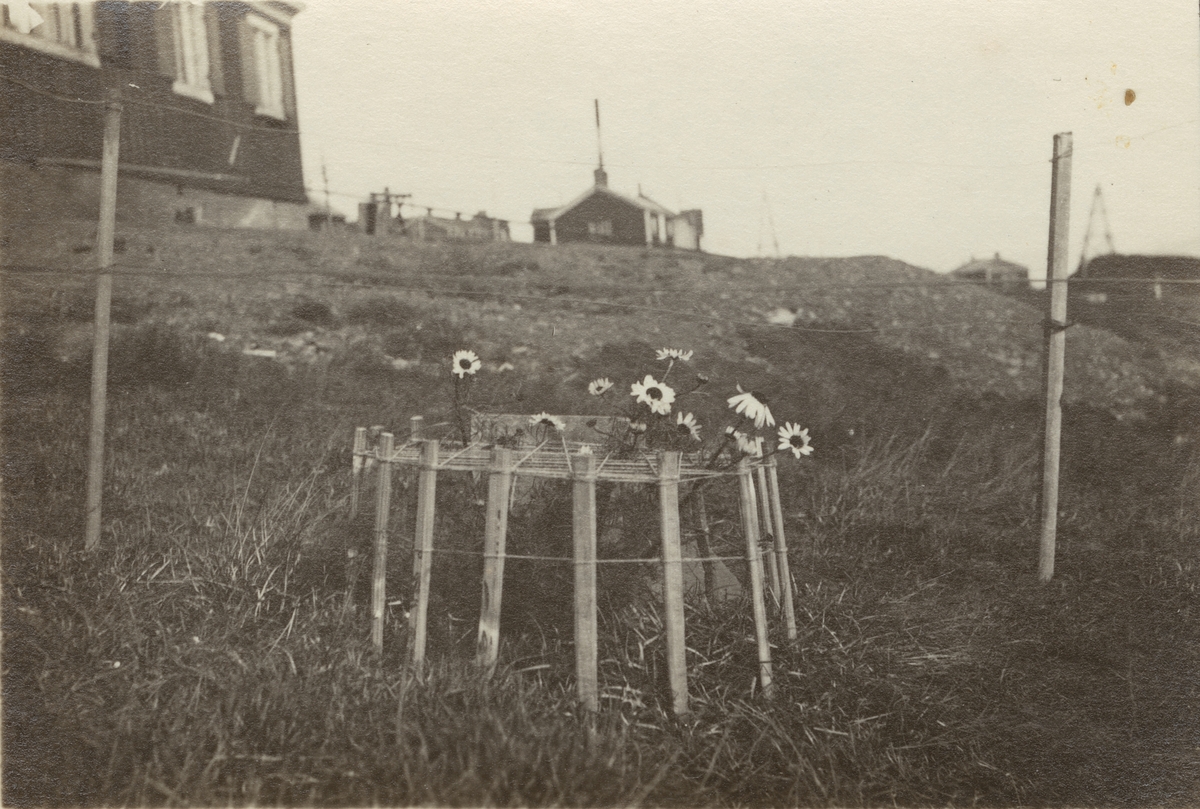 Fotografi från expedition till Spetsbergen. Motiv av staket och blommor vid Sveagruvan.