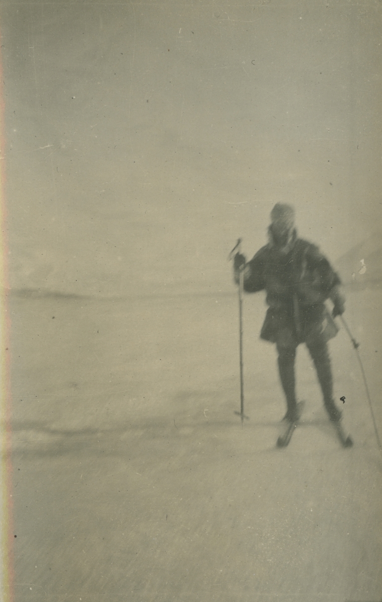 Fotografi från expedition till Spetsbergen. Motiv av skidåkare i ett snölandskap.