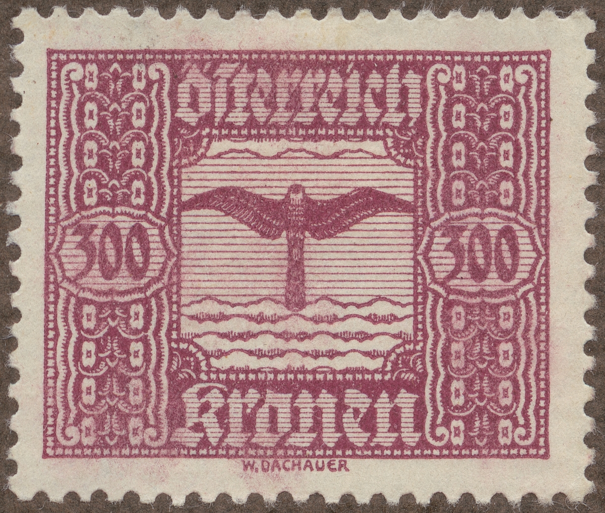 Frimärke från Österrike, 1922. Motiv av Falk flygsymbol