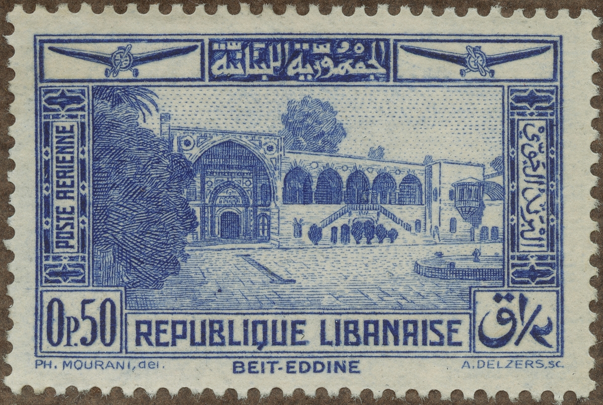 Frimärke från Libanon, 1938, Motiv av Arkaden i Palatset: Beit-ed-Din -Libanon-