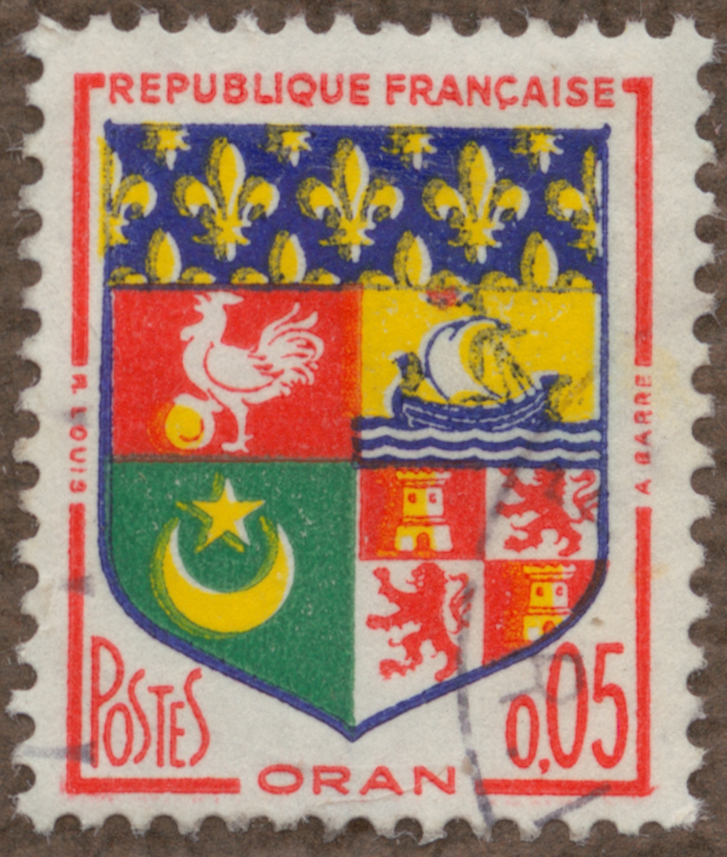 Frimärke från Fr. Algeriet, 1960. Motiv av Staden Orans Vapen "-Serie: algeriska städers vapen-"