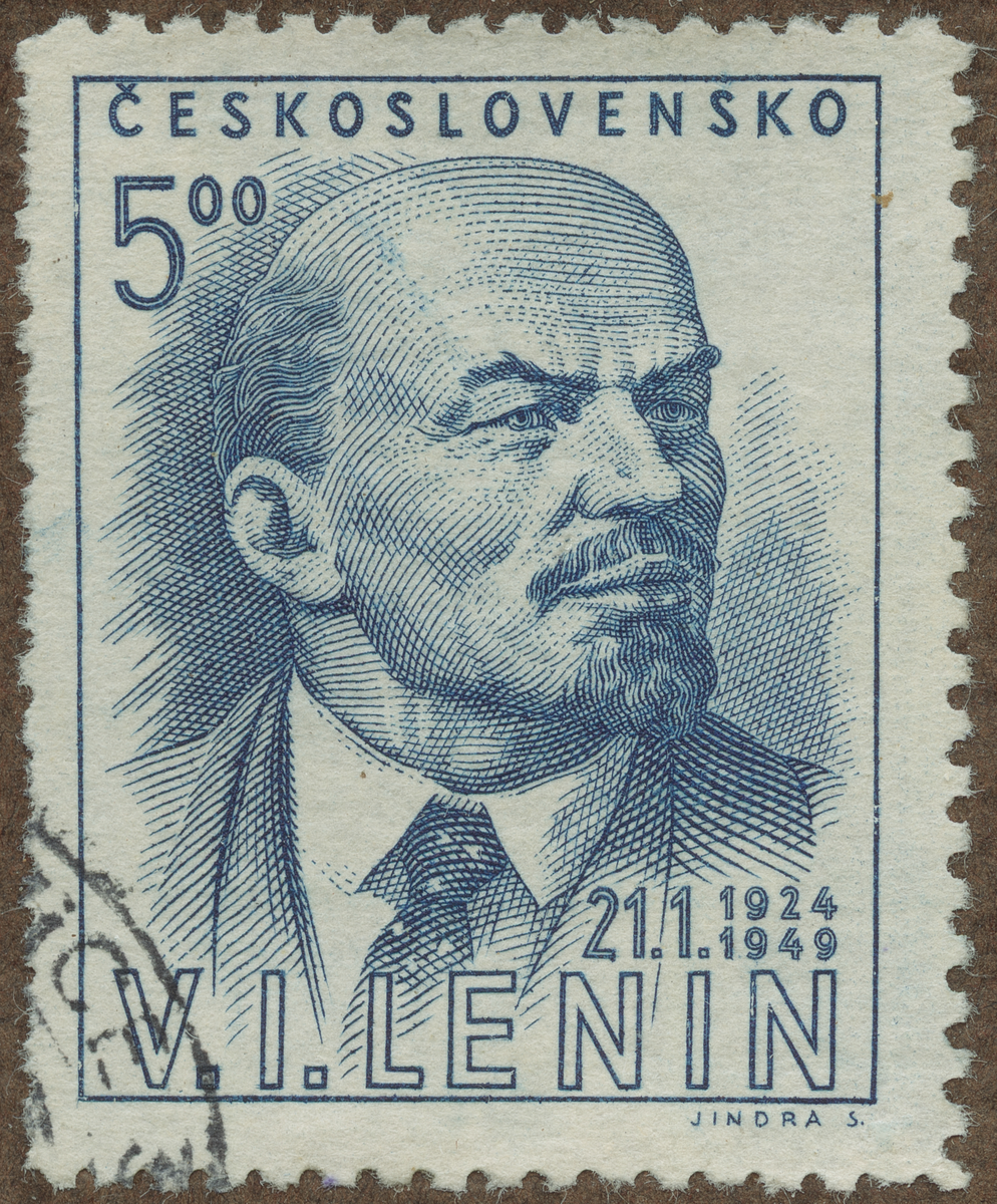 Frimärke från Tjeckoslovakiet, 1949. Motiv av Vladimir I Lenin 1870-21.1.1924 Advokat Rysk Diktator 1917 25-årsminne av hans död 1924-1949.