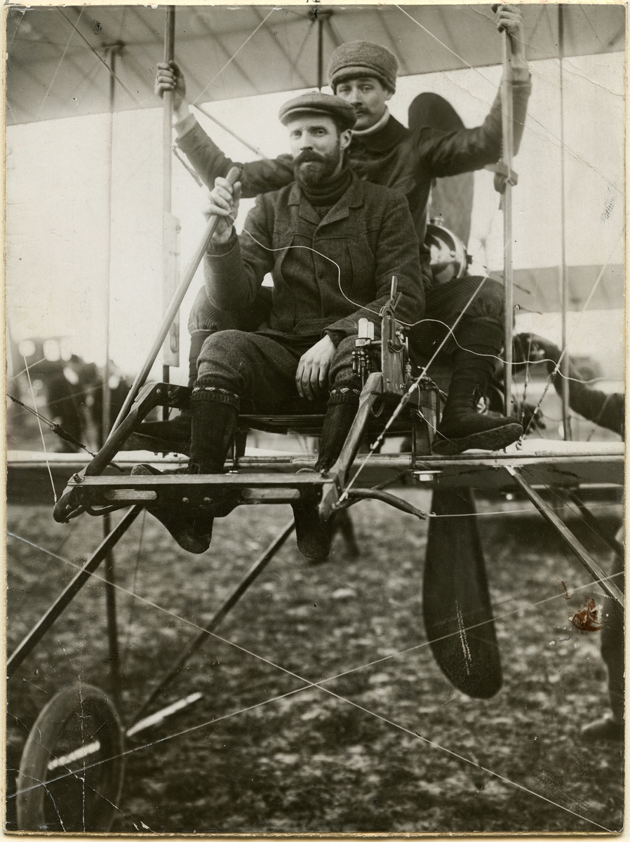 Henri Farman flyger med en fransk journalist, nyårsafton 1909.