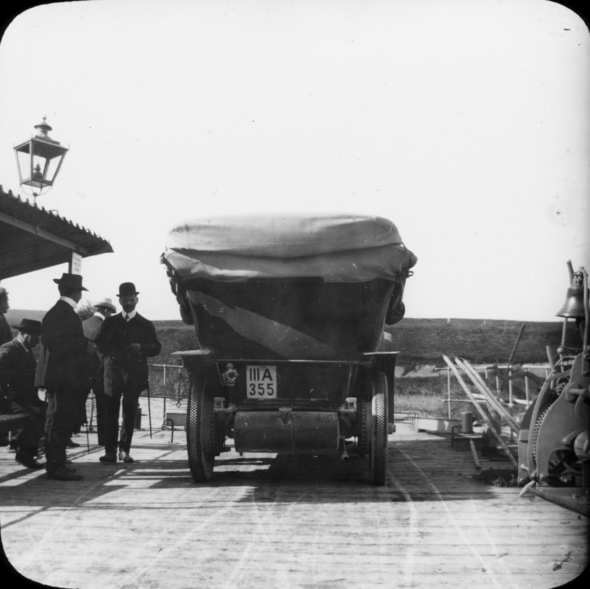 Skioptikonbild med motiv från överfartsfärjan över floden Neckar.