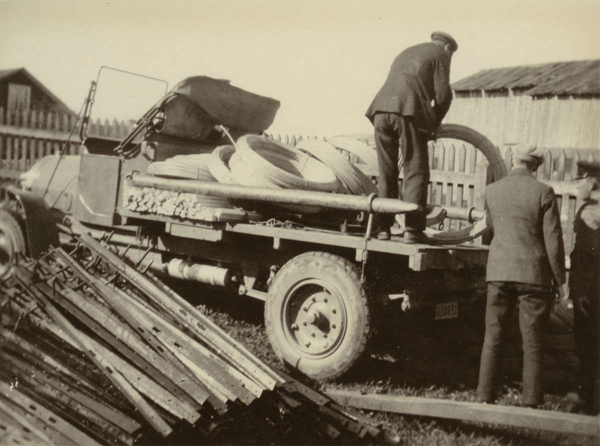 Hjälmsätrakabeln. Transport av stållina. Ur albumet Kabelarbetet Hjälmsälra (Hjälmsättra) - Norrtälje - Finnviken utfört under sommaren 1928.