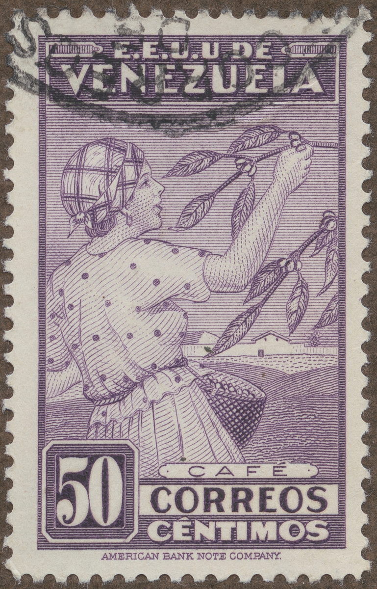 Frimärke från Venezuela, 1938. Motiv av kaffeskörd.