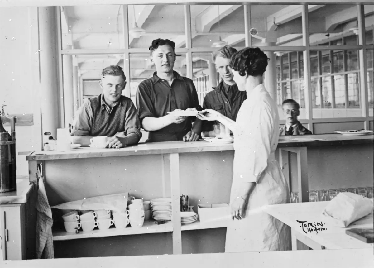 Bild från arbetsplatsdokumentation utförd av Arbetarskyddsstyrelsen. Fikarum på okänd arbetsplats.