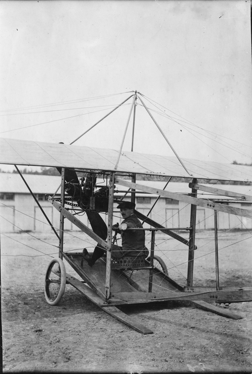 Fotografi ur album från Meisters-Flygaktiebolag i Göteborg. Karl Gustaf Meister sittande i flygmaskinen.