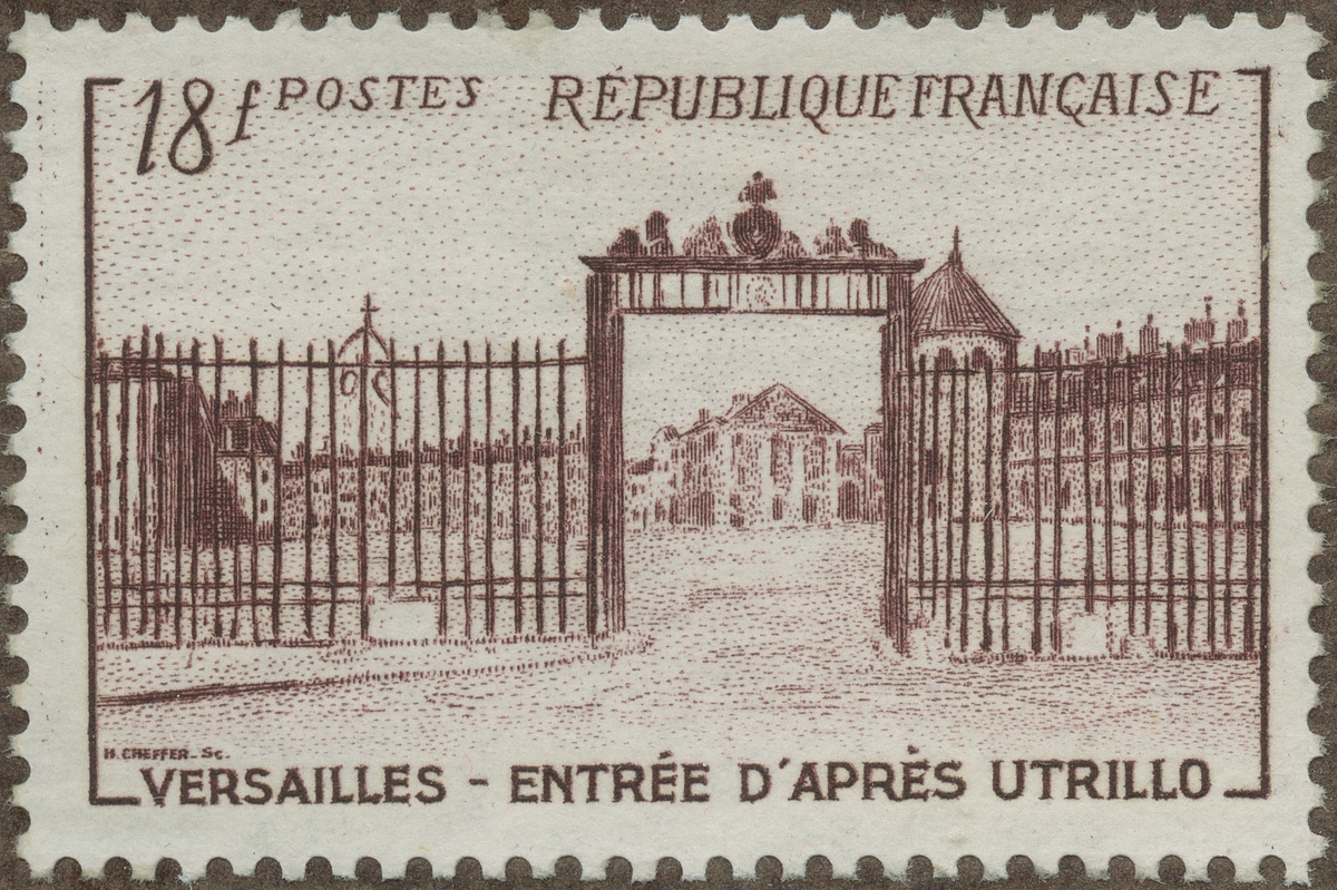 Frimärke från Frankrike, 1952. Motiv av Huvudentréen till slottet Versailles Paris