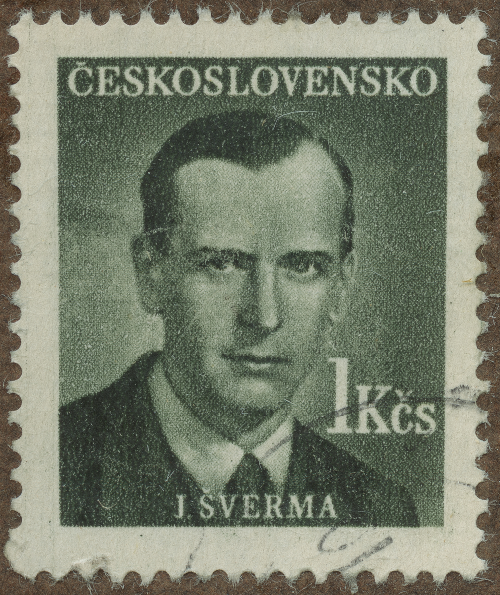 Frimärke från Tscheckoslovakiet, 1949. Motiv av J. Swerma Författare