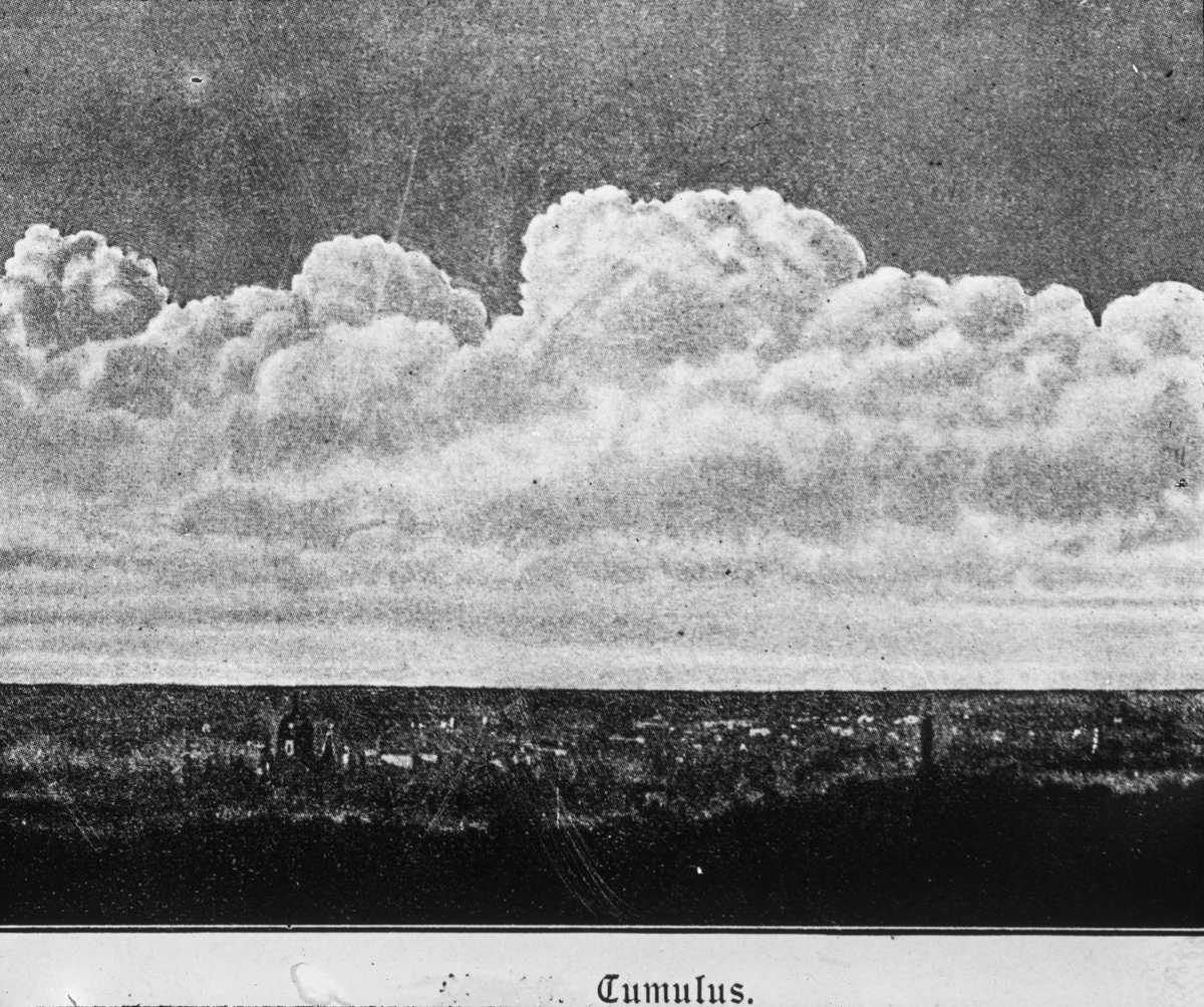 Skioptikonbild med motiv rörande olika typer av moln. Cumulus.