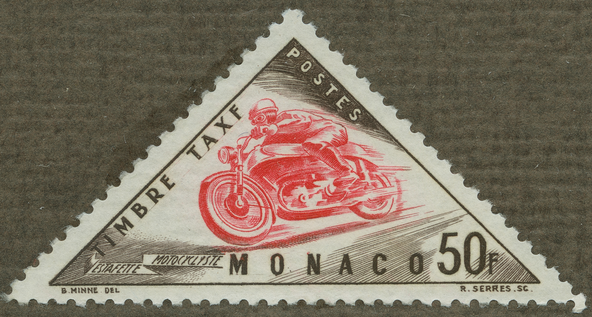 Frimärke från Monaco, 1953. Motiv av Fordon - motorcykel