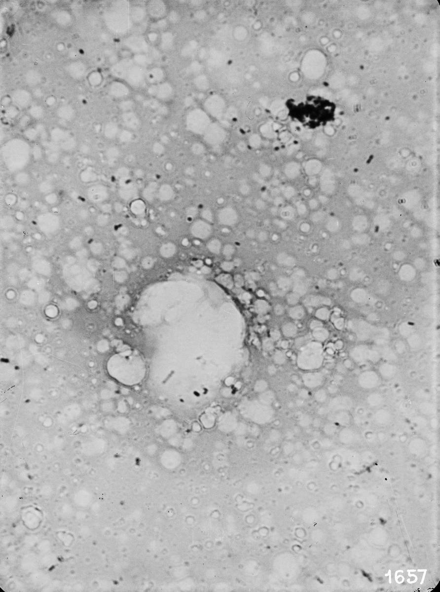 Mikrofotografering av mjölk. Mjölk, förvarad 3 dygn i 20°C. Prov nr. 30.