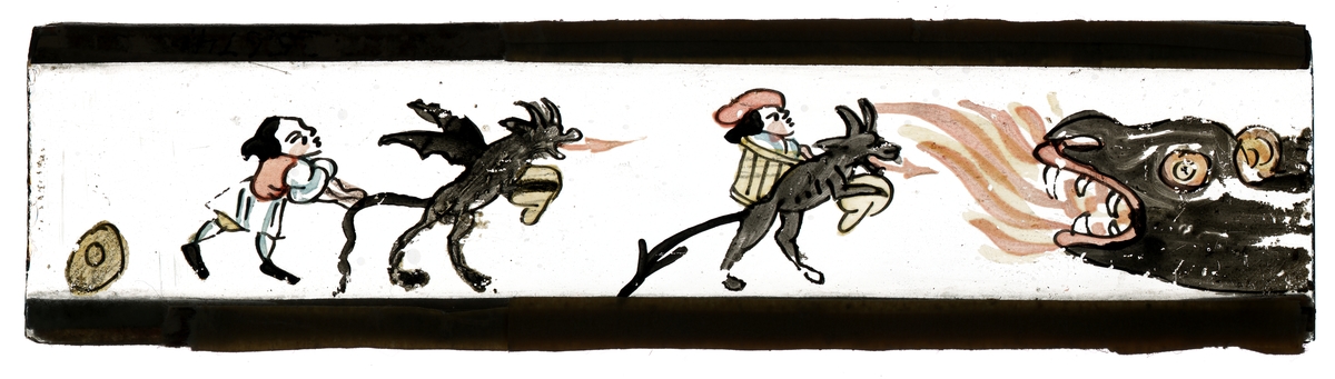 Handmålad bild på glas för Skioptikon/Laterna magica.