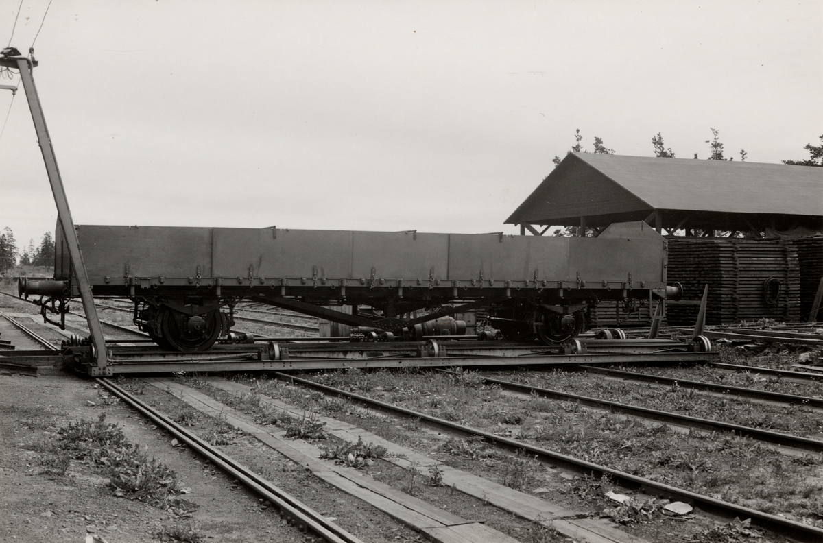 AB Gävle Vagnverkstad. Vagn under transport till sprutbox.