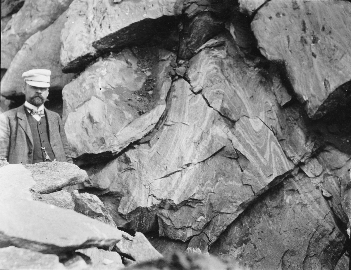 Veckning av bergort, kalkränder i omväxling med magnetitlager.
