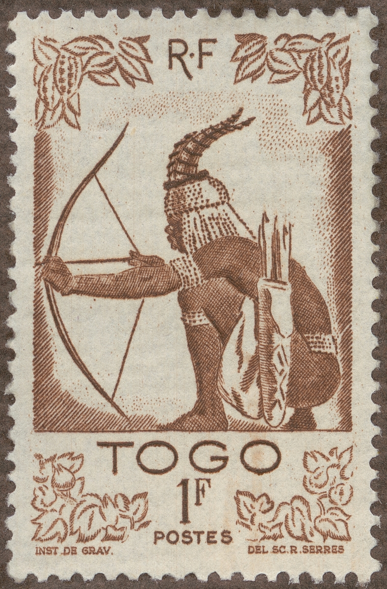 Frimärke från Västafrika Franska Togo, 1947. Motiv av Bågskytt.