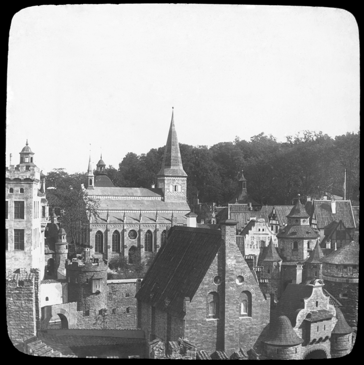 Motiv från Allmänna Konst- och Industriutställningen 1897. Vy över Gamla Stockholm.